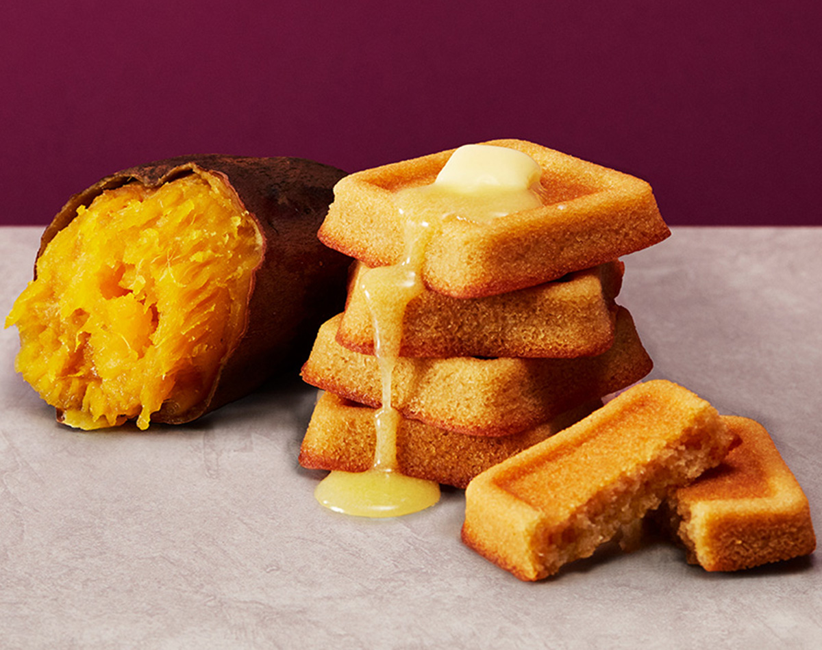 - ニュージーランド産牛乳のバターと安納芋を生地に練り込み焼き上げた、バターとさつまいものフィナンシェでございます。