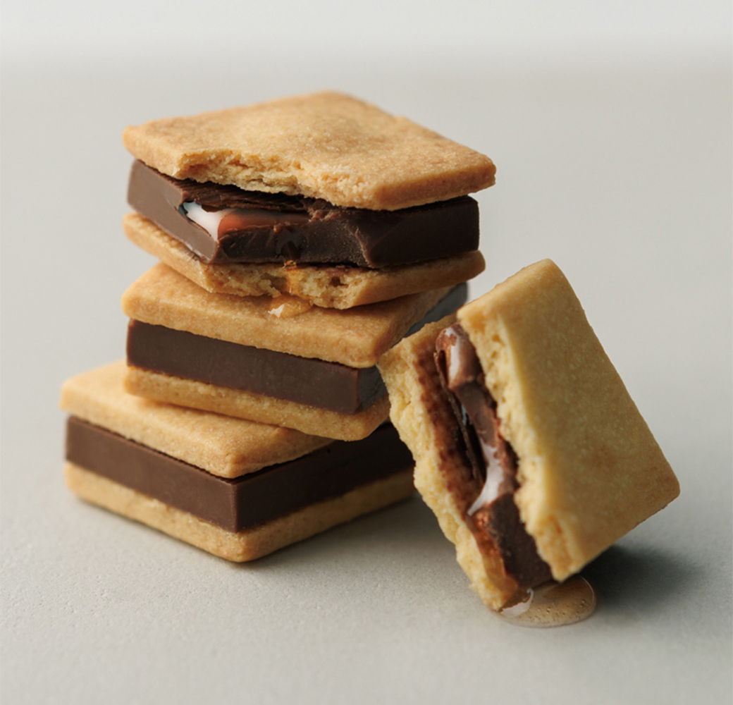 サクサク食感のバターサブレでサンドしたチョコレートの中からは、とろ~りと溢れ出すはちみつソース。異なる食感が織りなす贅沢な味わい。