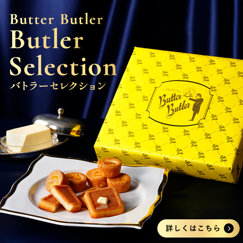 ご主人様。バターバトラーは、世界中の産地から選りすぐったバターでお作りした、バターが主役のスイーツでございます。当家のパティシエの自信作を、是非ご賞味くださいませ。