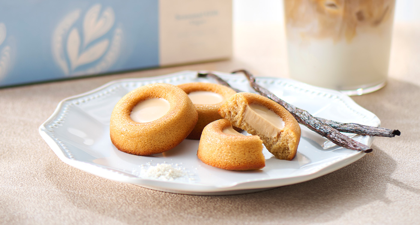 しっとり生地に、コーヒー風味のホワイトチョコを閉じ込めて。ラテ仕立てのティグレです。
