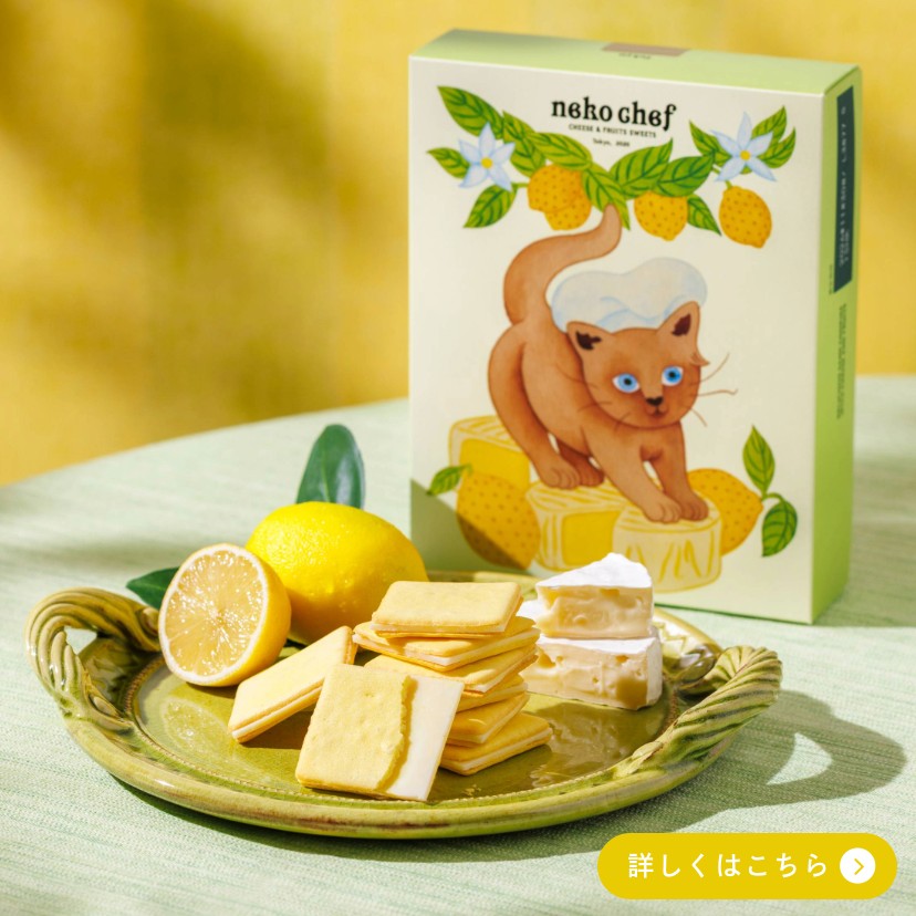 北海道産牛乳とレモンを合わせたクッキー生地に、カマンベールチーズのチョコ※をサンドしたクッキーです。カマンベールのコクとレモンの爽やかな味わいをお楽しみください。
