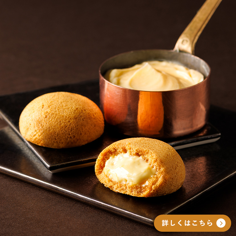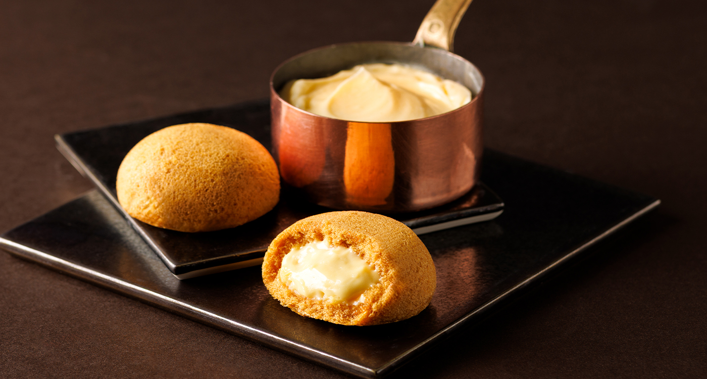 阿蘇・小国ジャージー牛乳を使用したなめらかなカスタードクリームを、九州産クリームチーズのふわふわのスフレで閉じ込めました。