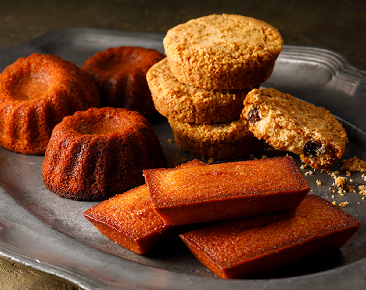ラムレーズンバタークッキー、バターフィナンシェ、ラムレーズンバターケーキの詰め合わせ。 一度に3種のお味をお楽しみいただけます。 -