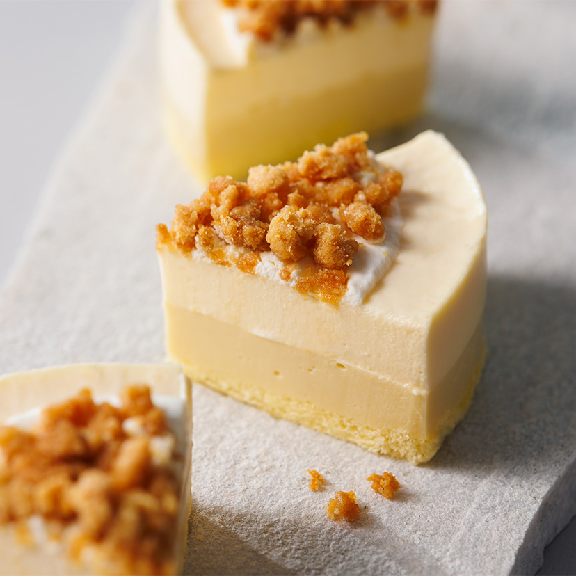 しっとりと焼き上げたスポンジケーキに、濃厚なゴルゴンゾーラクリーム層と、マスカルポーネの優しい甘みが引き立つムースを重ね合わせました。仕上げに生クリームと、シナモンがほんのり香るシュトロイゼルをあしらった、チーズの風味を存分に楽しめるムースフロマージュです。チーズが織りなす奥深い味わいを、ぜひご堪能ください。 (チーズ中ゴルゴンゾーラ16%使用)(チーズ中マスカルポーネ46%使用) ※各日数量限定販売につき無くなり次第終了
