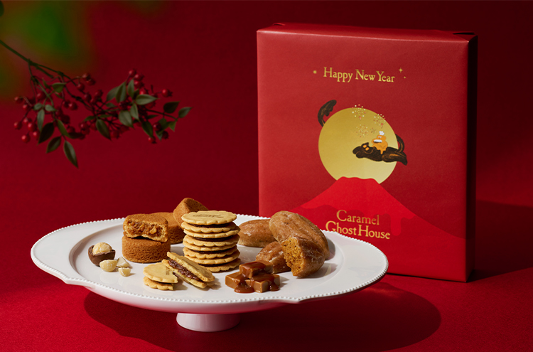 キャラメルゴーストハウス人気の定番焼き菓子3種のキャラメル菓子を味わえる詰合せです。 真っ赤なパッケージで包んだ迎春ギフトは、手に取るだけで場を明るくし、新年のご挨拶にも華を添えるひと箱。 お屋敷から飛び出したキャラメルオバケとメルちゃんは、晴れやかな空気に誘われるように、お祝いムードの中を元気いっぱいに駆け巡ります。 年末年始のご挨拶に、キャラメルゴーストハウスの遊び心ある世界観をお届けしませんか? 数量限定・期間限定ですので、この機会をお見逃しなく。 ※商品では紅茶葉または紅茶パウダーを使用