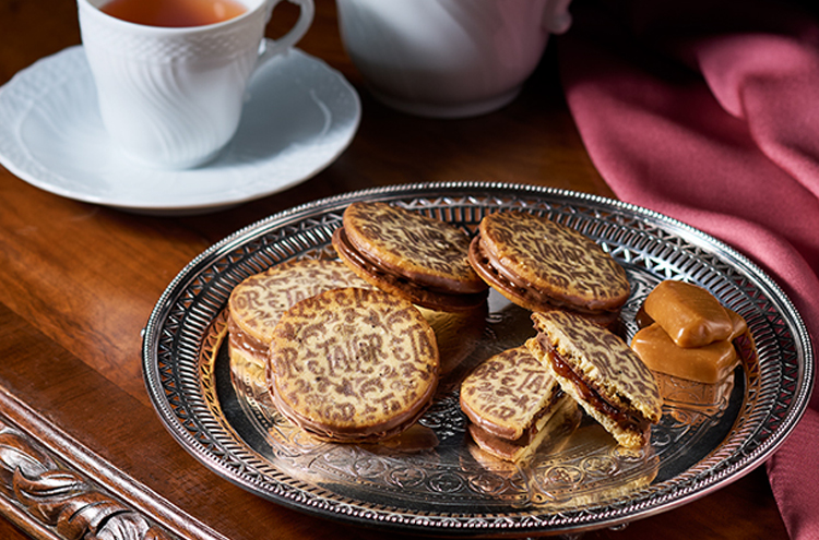 アールグレイの茶葉を合わせた、華やかな香りのクッキーで、 コク深いキャラメルソースをミルクチョコレートとともにサンドしました。 相性のいいアールグレイとキャラメルが織りなす、上品な紅茶の香りと深みのある味わいをお楽しみください。