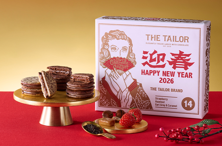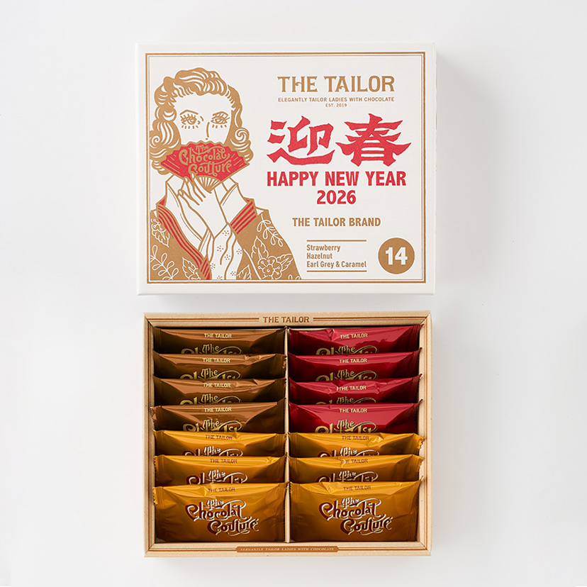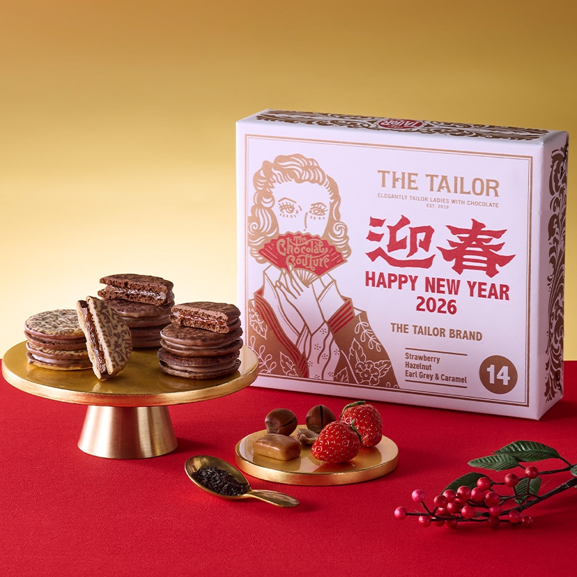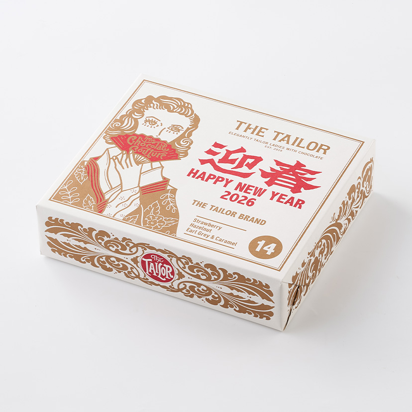 クッキー生地にアールグレイの茶葉を練り込み、コク深いキャラメルソースとミルクチョコレートをサンドした期間限定の味わい「アールグレイ&キャラメル」。濃厚なヘーゼルナッツクリームをミルクチョコレートで包み込んでサンドした「ショコラ」。爽やかな酸味のイチゴペーストをミルクチョコレートで包み込んでサンドした「イチゴ」。 3種の自慢のショコラサンドを詰め合わせた、ギフトにおすすめの一品。 新年をイメージした華やかな迎春パッケージで、彩りある新年のご挨拶に。