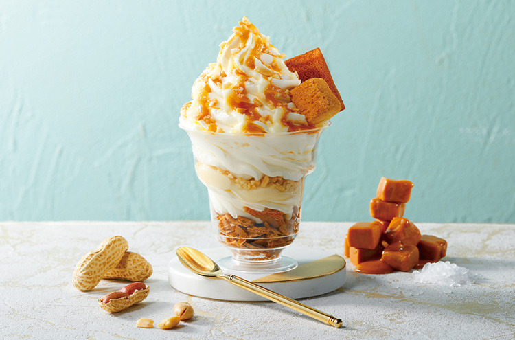 程よい塩味がキャラメルのコクやソフトクリームの甘味を引き立て、食べ進めていくといろいろな食感をお楽しみいただけます。