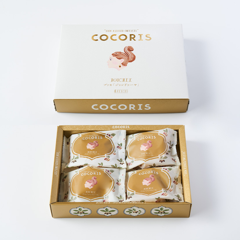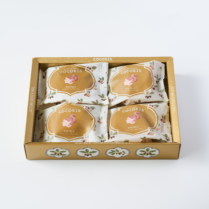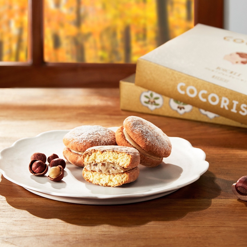 ふんわりと焼き上げたブッセ生地にココアバターとヘーゼルナッツで口どけなめらかに香ばしく仕上げたジャンドゥーヤクリームをサンドしました。 キャラメリゼしたアーモンドの食感もアクセントとなった、風味豊かな味わいをお楽しみください。