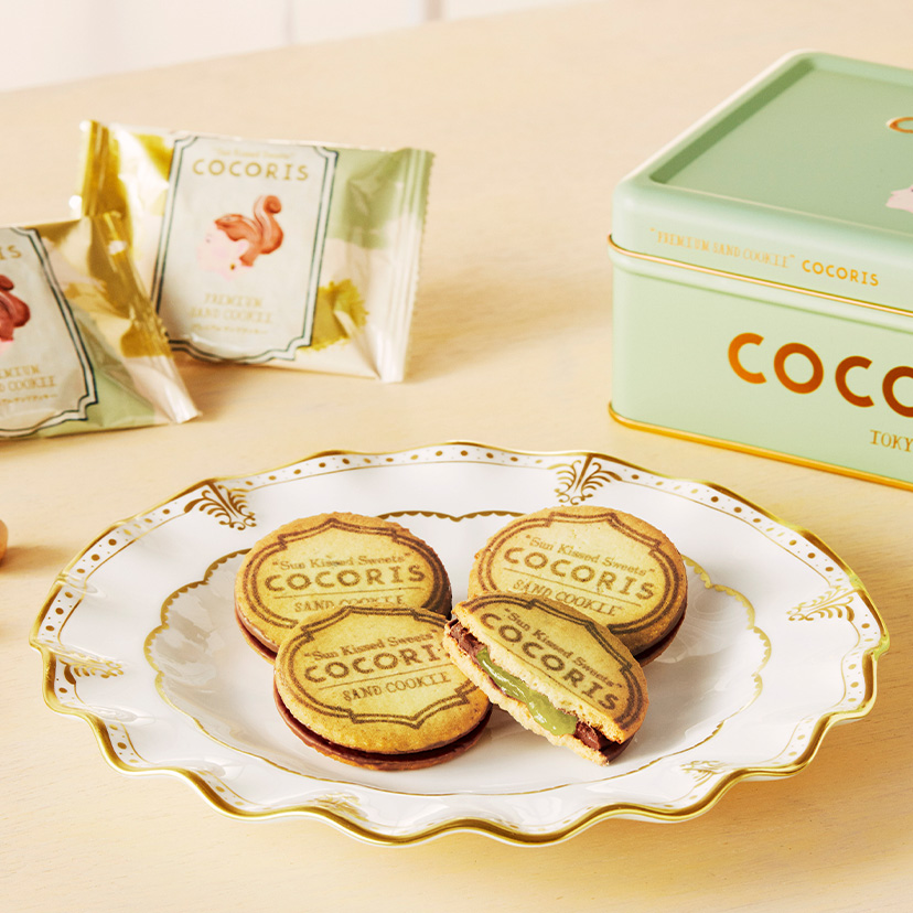なめらかなピスタチオ風味ペーストをフランス製ミルクチョコレートでコーティングし、ピスタチオパウダーを練り込んだクッキーでサンドしました。ナッツの女王とも呼ばれるピスタチオをクッキーとペーストの両方に使用した、プレミアムなサンドクッキーです。