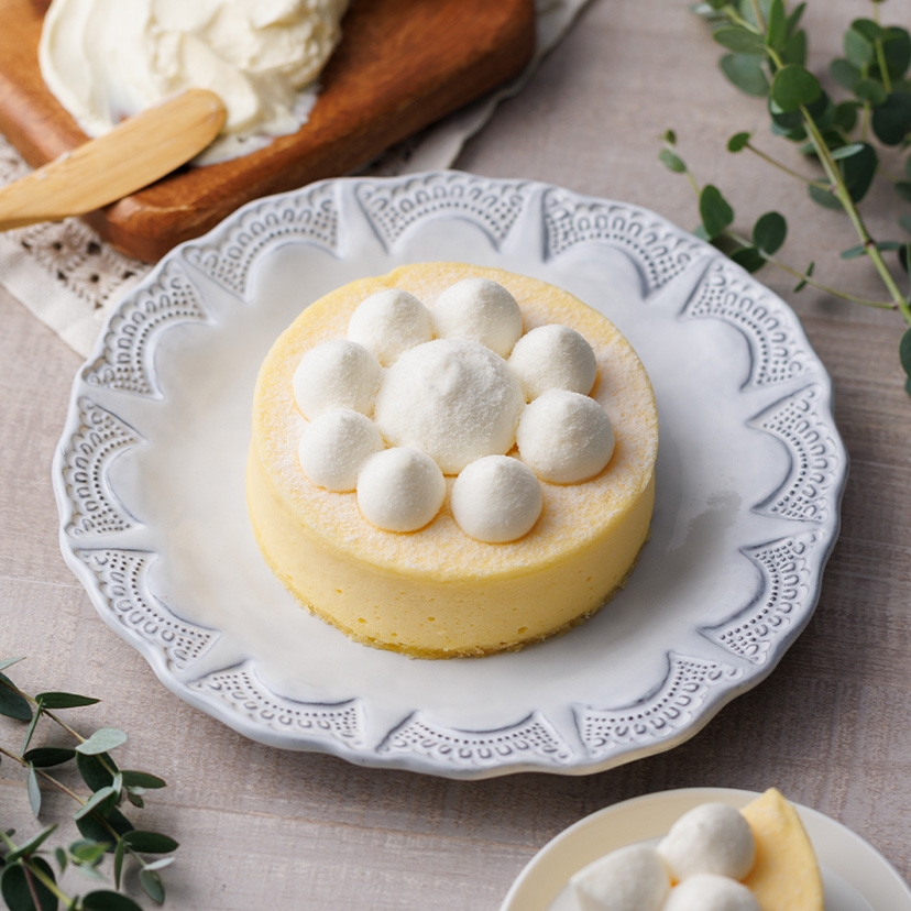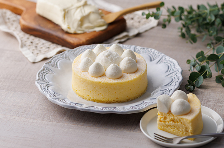 ふわっと軽く、口どけの良いスフレ生地に、フランス製造のチーズを使い、なめらかな口当たりに仕立てたチーズクリームを閉じ込めました。