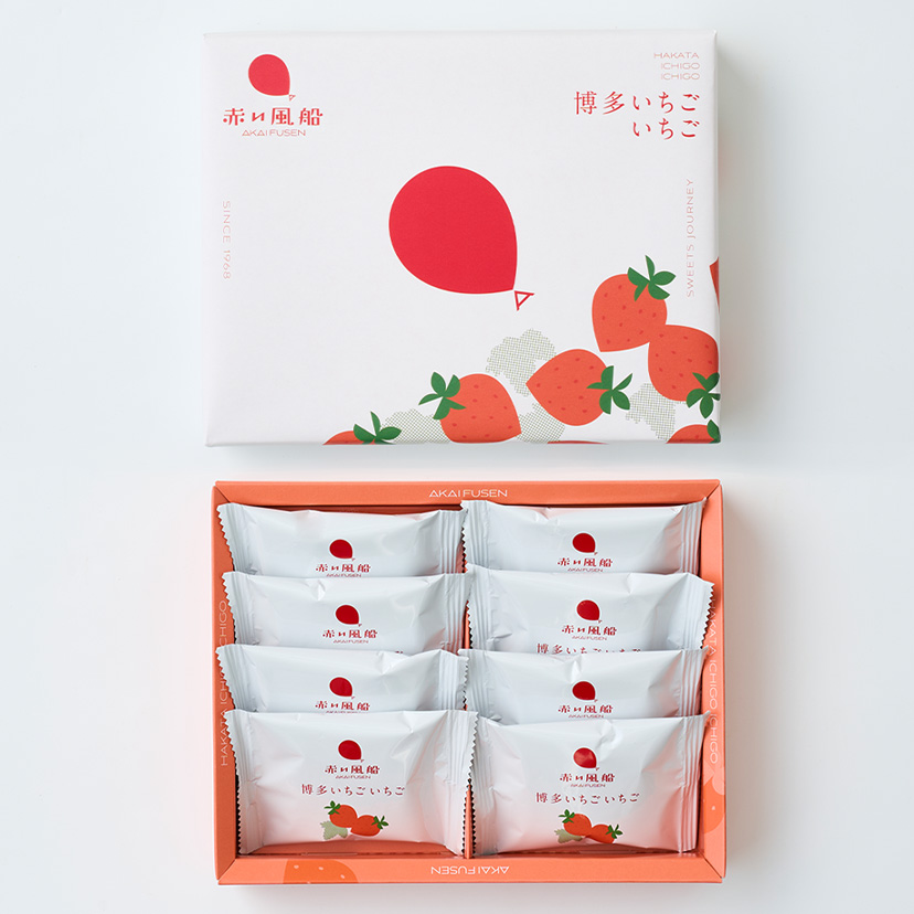 博多でしか出会えない、“とっておき”の限定スイーツ。いちご風味のチュイールに、あまおう苺入りの甘酸っぱいチョコレートをサンドした「博多いちごいちご」。 発酵バターやいちごペーストを練りこみ、風味豊かに、そして繊細な食感に仕上げたチュイール。あまおう苺の程よい酸味が調和した、口どけなめらかなチョコレート。そして、トッピングのアーモンドが食感と味わいにアクセントを添えます。素材の魅力が折り重なるように広がる味わいが、甘くてやさしい癒しのひとときをお届けします。 思わず口ずさみたくなるリズミカルな商品名も魅力のひとつ。新しい“博多土産”として、ぜひおたのしみくださいませ。 ※全いちごのうち、福岡県産あまおう32%使用