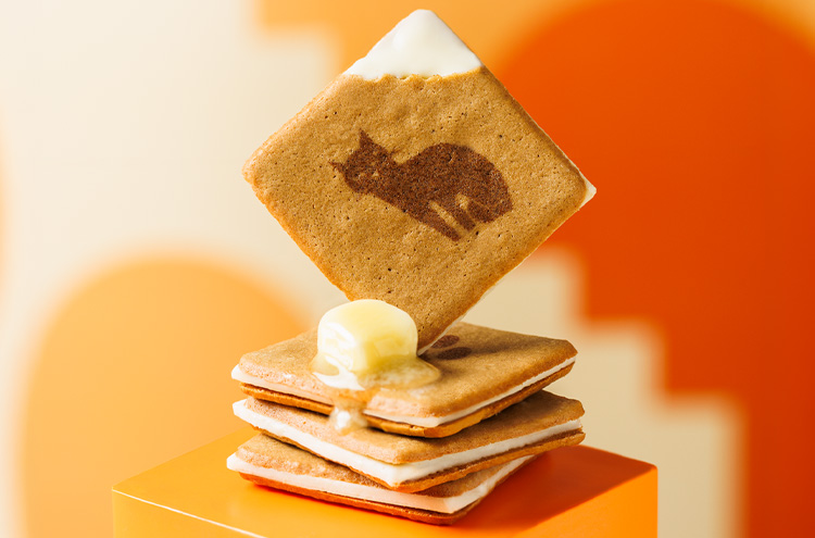 黒糖とグラスフェッドバターを練り込んだ生地を軽やかに焼き上げ、バター風味のチョコをサンドしたラングドシャです。