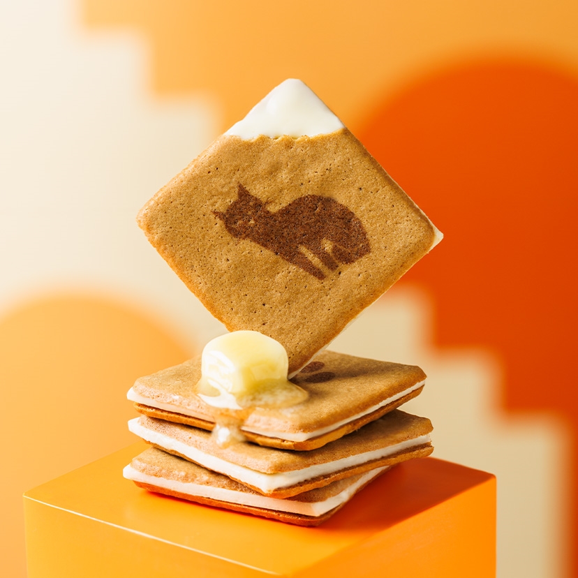 黒糖とグラスフェッドバターを練り込んだ生地を軽やかに焼き上げ、バター風味のチョコをサンドしたラングドシャです。