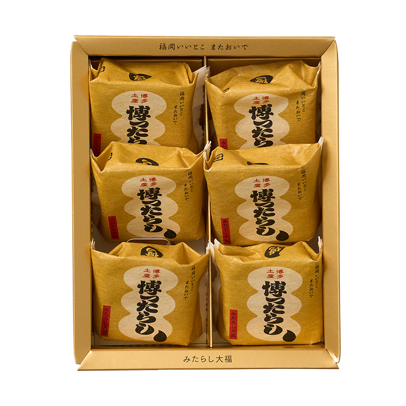 福岡県製造の特級醤油で仕上げたみたらしたれをもちもちの大福生地で包み、噛むほどにとろりと広がるみたらしの風味が魅力の一品です。やわらかく伸びる生地とみたらしの相性がよく、シンプルながら満足感のある味わいです。