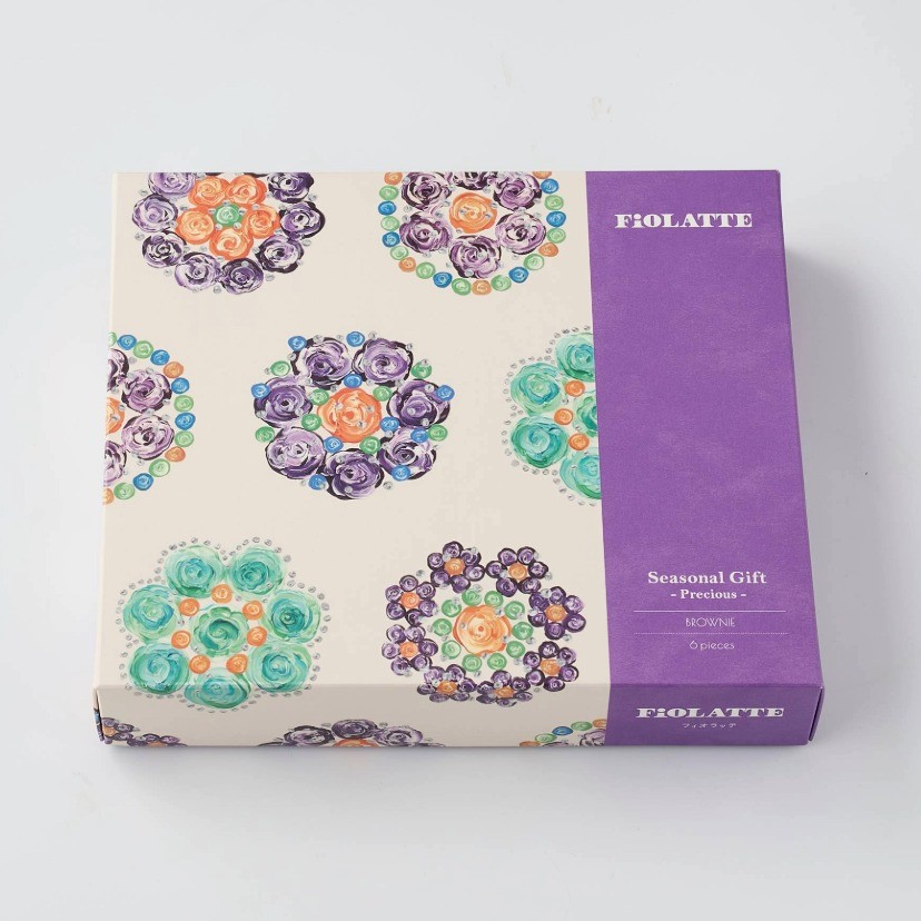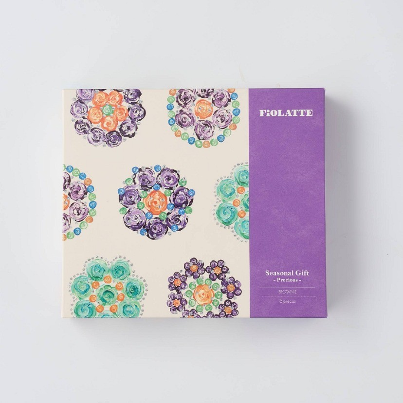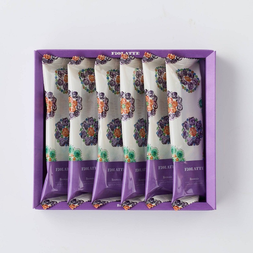 厳選した2種類のクーベルチュールチョコレートとコーヒー豆を練り込んだ生地に、アクセントにくるみを加えた、ブラウニーです。 天面はラテアートをイメージして、華やかにデコレーションで仕上げました。 ほんのり苦みのきいた、FiOLATTE自慢のブラウニーをお愉しみください。