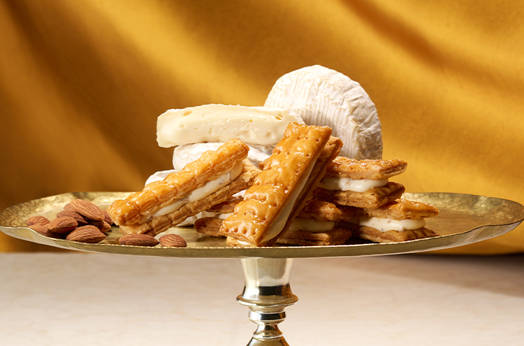 黄金色に焼き上げたサクサクのパイ生地とカマンベールクリームで仕立てたミルフィユ。