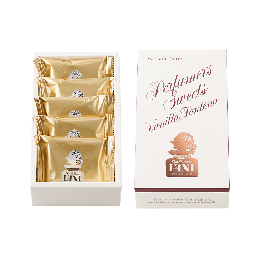 ニュージーランド製バターに、蜂蜜とブラウンシュガー※1を組み合わせ、コク深くしっとりと焼き上げたバニラ香る生地。 そのくぼみを、ふわりと香るバニラのチョコ※2で満たしました。 まるで、甘く湧き出す「バニラの泉」。 華やかなバニラの香りと、奥行きのある甘さが織りなすハーモニーをお楽しみください。 ※FONTAINE(フォンテーヌ)はフランス語で“泉”の意 ※1砂糖中ブラウンシュガー39%使用 ※2チョコは準チョコレートとチョコレートコーチングを混合使用