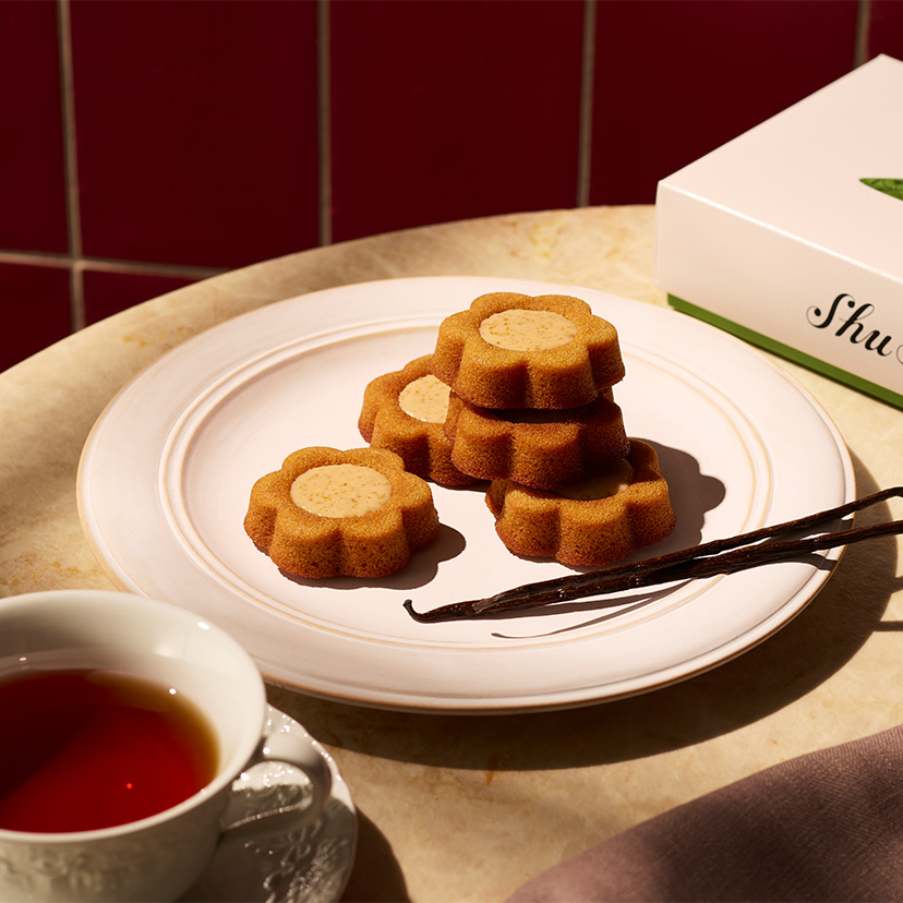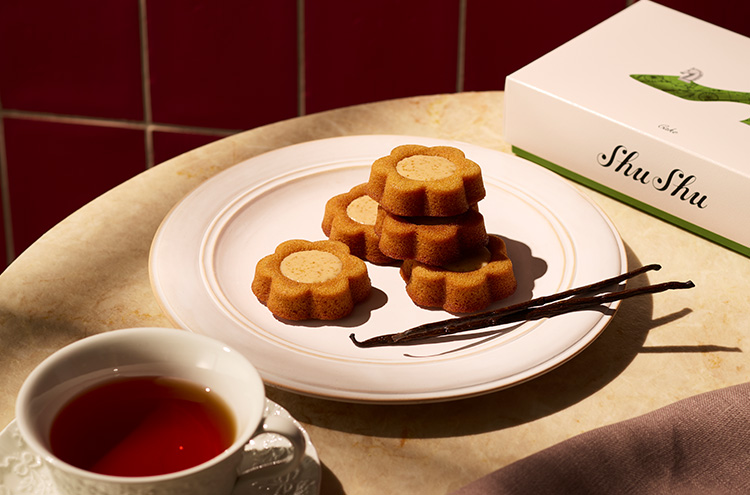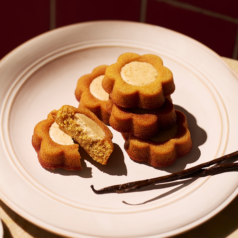 マダガスカル産バニラとグラスフェッドバターを練り込んだバニラ薫る生地に、チョコレートを満たした、コク深い味わいのケー キです。 キャラメル・ミルク・ホワイトの3種のチョコレートにさらにキャラメルキャンディを加えることで、甘美な味わいを引き立てます。