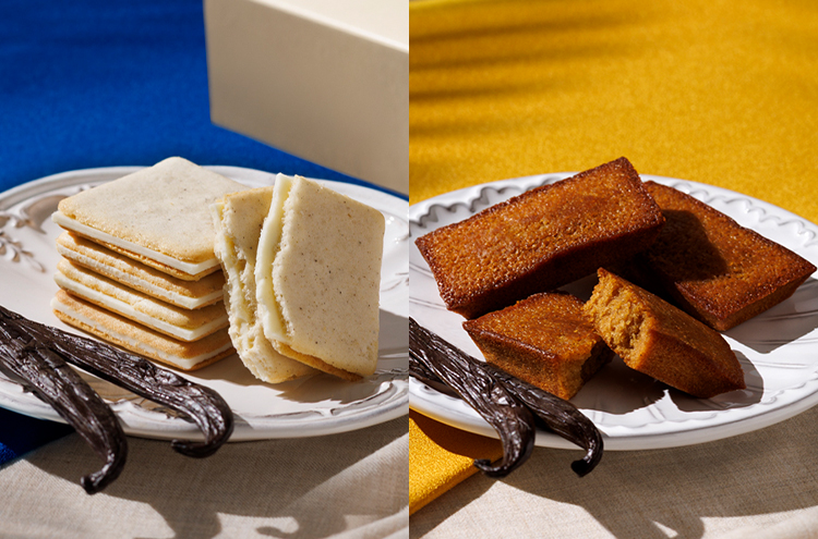 タヒチ産バニラの華やかな香りで仕立てた、バニラサンドクッキー、フィナンシェを詰め合わせたオープニング限定ギフトボックス。