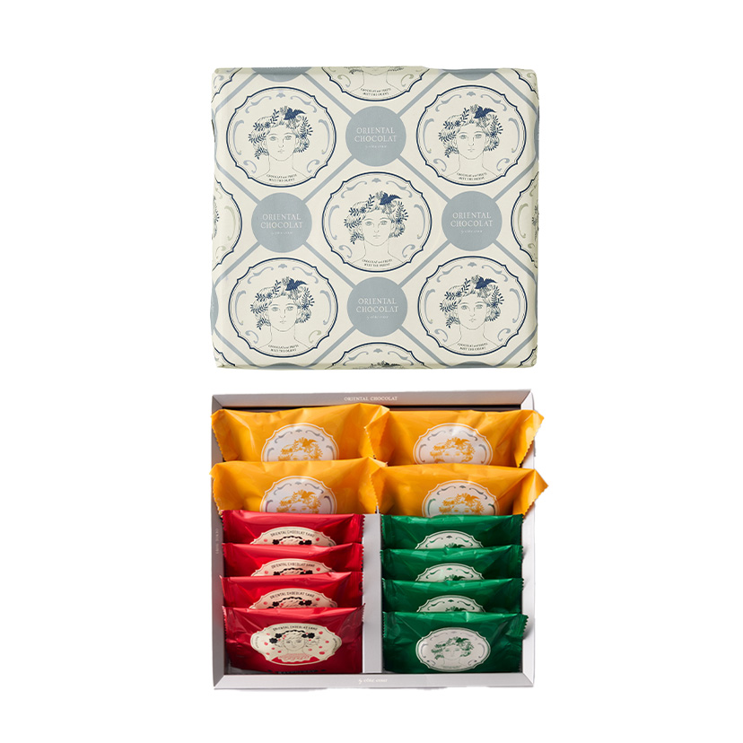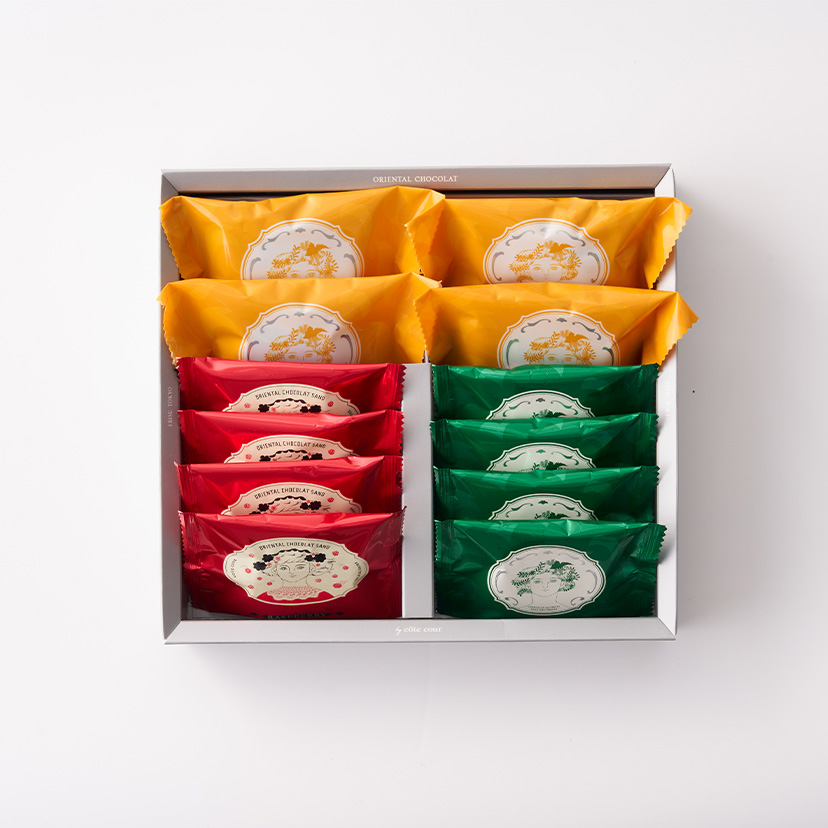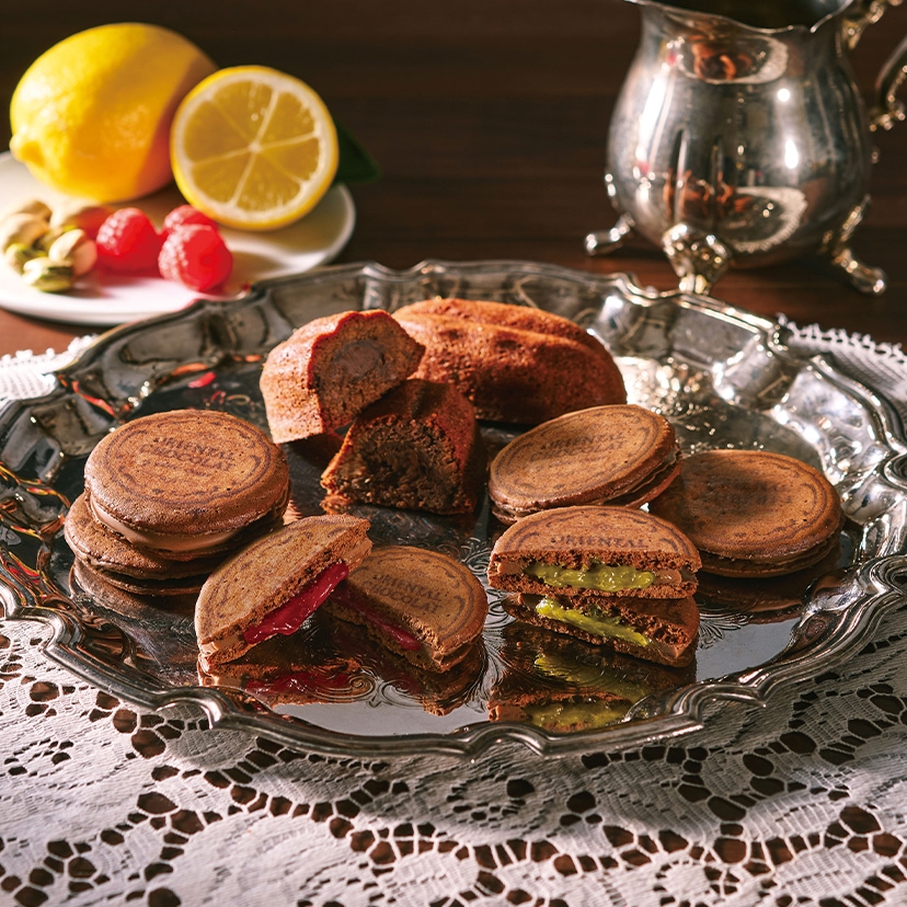 定番人気の「オリエンタルショコラマドレーヌ レモン」、「オリエンタルショコラサンド ラズベリー」と期間限定の「オリエンタルショコラ ピスタチオ」が楽しめる贅沢な詰め合わせです。