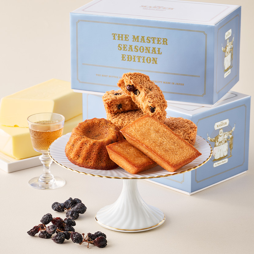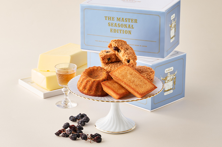 期間限定のパッケージでご用意した、「バターフィナンシェ」、「ラムレーズンバタークッキー」、「ラムレーズンバターケーキ」の3種詰合せ。 1番人気商品の「バターフィナンシェ」は、モンテギューA.O.P.バターをたっぷりと使った、バターを味わうフィナンシェです。甘みと深みが出るように、ヘーゼルナッツとアーモンドを合わせて仕立てました。記憶に残るコクと香ばしさに、リピーターが多い一品です。 コクとうまみが贅沢な味わいの「ラムレーズンバターケーキ」。バターの味わい、そして、メープルの甘みとラムレーズンの酸味がバランスよくまとまった「ラムレーズンバタークッキー」。 異なる食感と味わいで楽しむバター菓子を、ぜひご堪能ください。