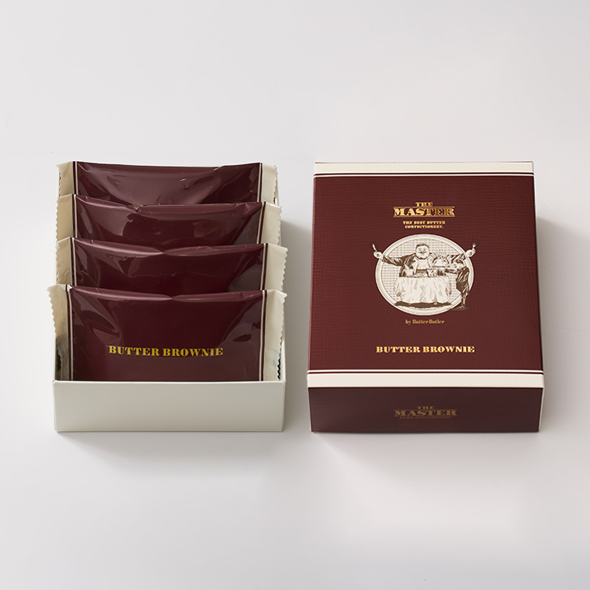バターの豊かな香りが広がるザ・マスターオリジナルのブラウニー。 ニュージーランド製グラスフェッドバターを生地に加え、外はさっくり、中はしっとりと仕上げました。アーモンドダイスの心地よい食感をアクセントに、ヘーゼルナッツを使用した特製ガナッシュを包み込みました。