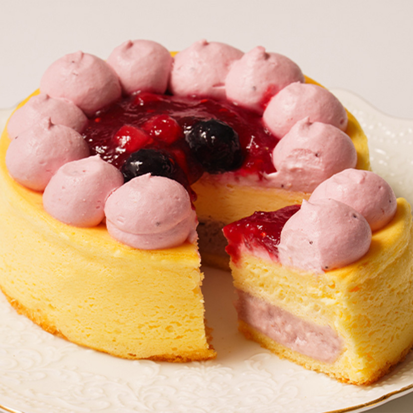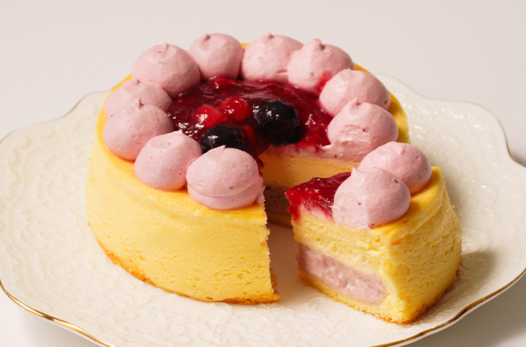 熊本・阿蘇産ジャージー牛乳を使ったミルキーなチーズスフレに、甘酸っぱい特製いちごカスタードを閉じ込めました。 仕上げに口どけなめらかな苺マスカルポーネクリームと果肉感のあるベリーのコンポートをあしらい、華やかに。 チーズのコクと苺の爽やかな味わいがとろけ合う、季節限定のフォンダンフロマージュです。