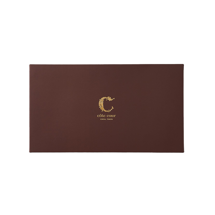 コートクールの定番商品。 厳選した2種類のクーベルチュールチョコレートを生地に練り込み、力強いカカオの風味が感じられる生地に仕上げました。 なめらかでしっとりとした食感が愉しめます。