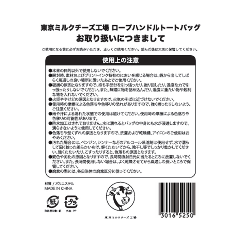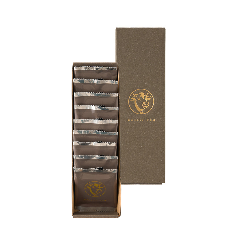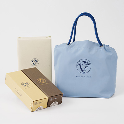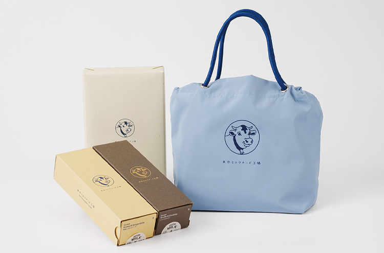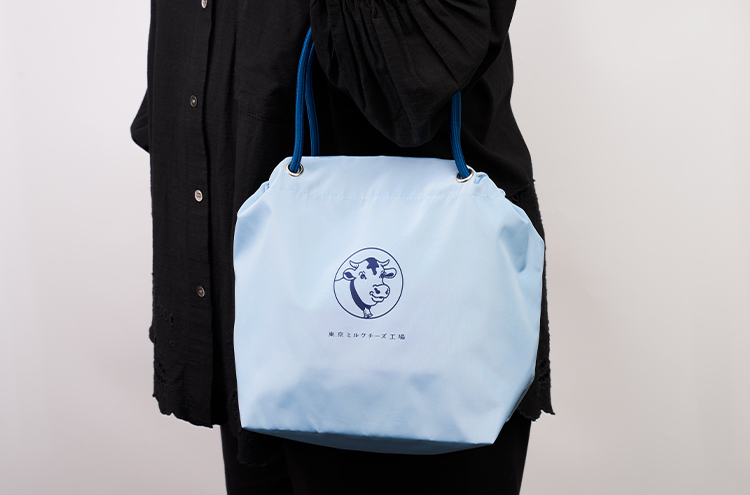 東京ミルクチーズ工場をイメージした水色の生地にブランドロゴが映える、洗練されたデザイン。