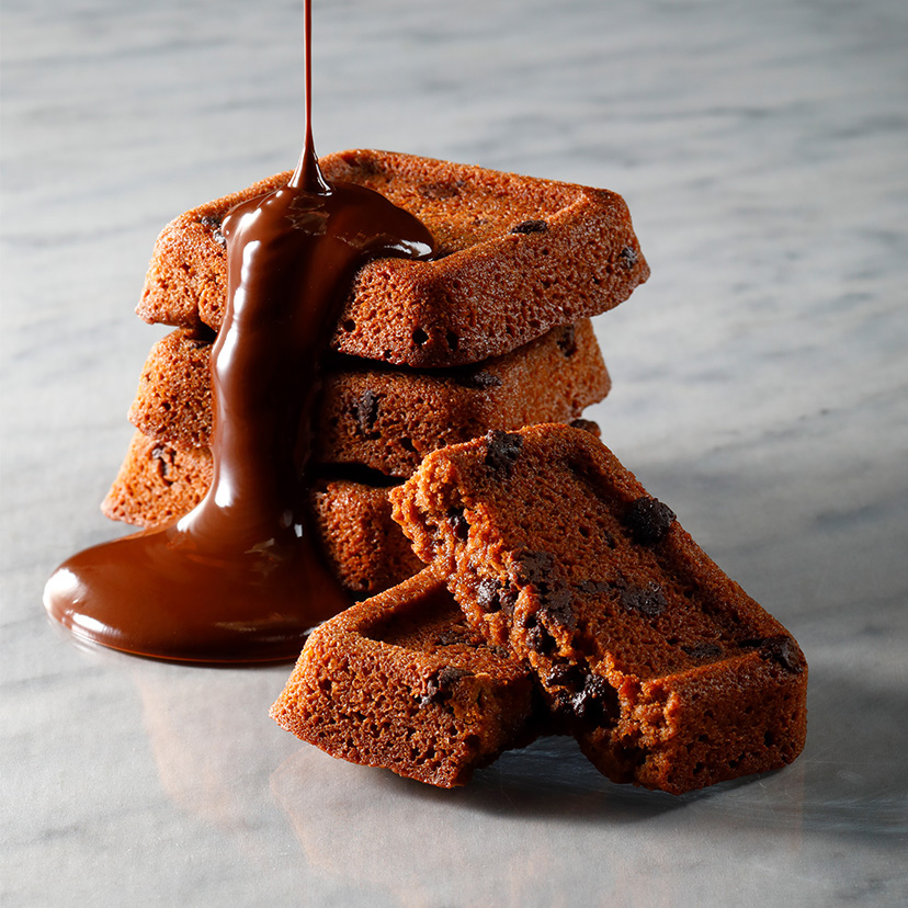 フランス産生乳の発酵バターとスペインでつくられたカカオ分66%のチョコレートとカカオ分44%のチョコチップを生地に練り込み焼き上げた、バターチョコレートフィナンシェでござ います。