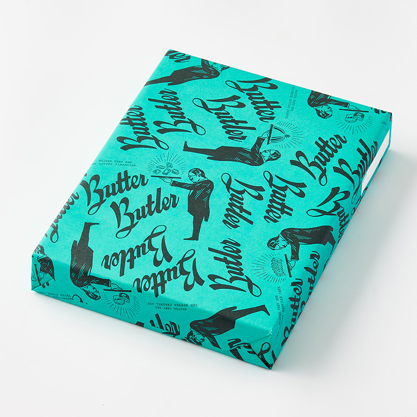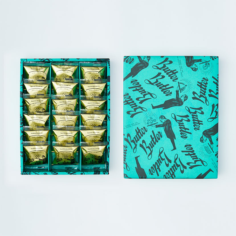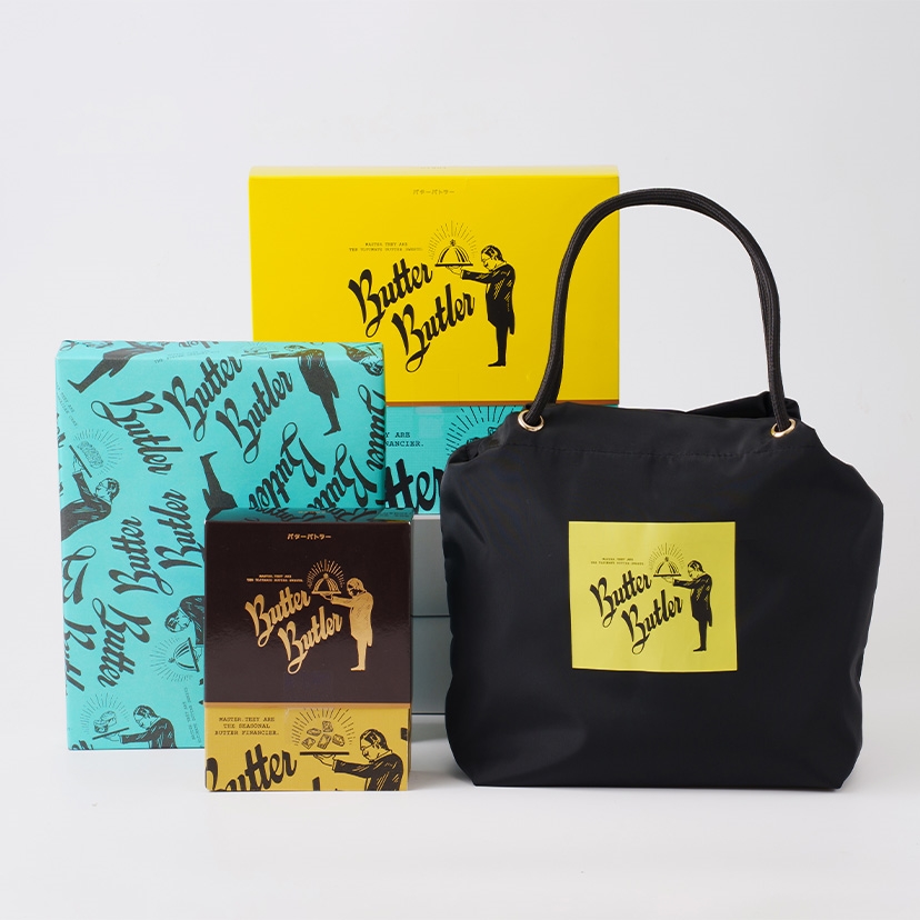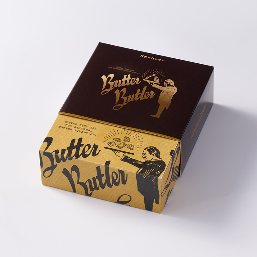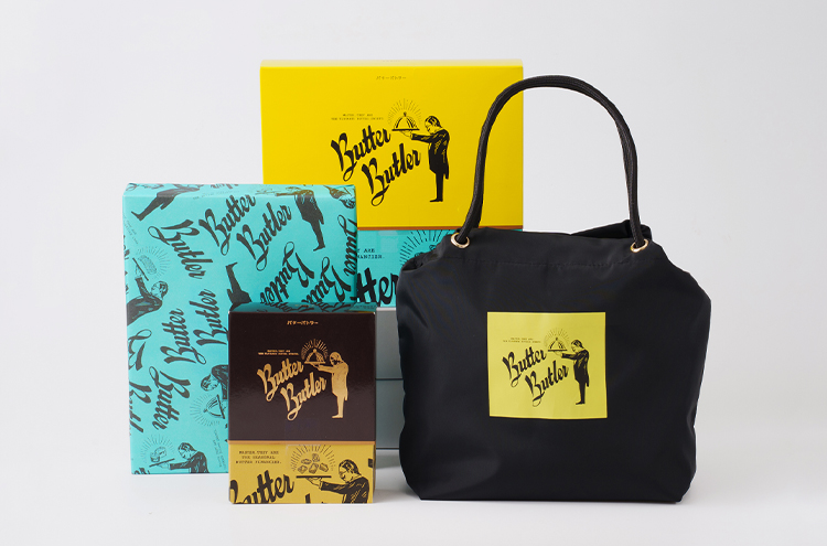 黒地にバターバトラーのブランドロゴが映える、洗練されたデザイン。
