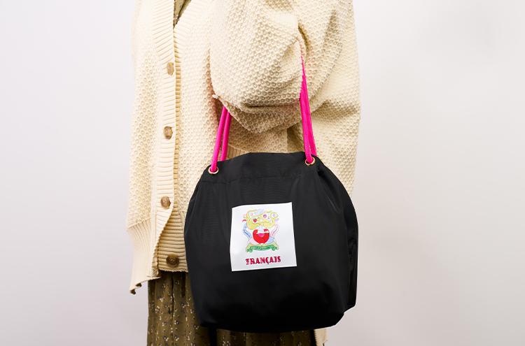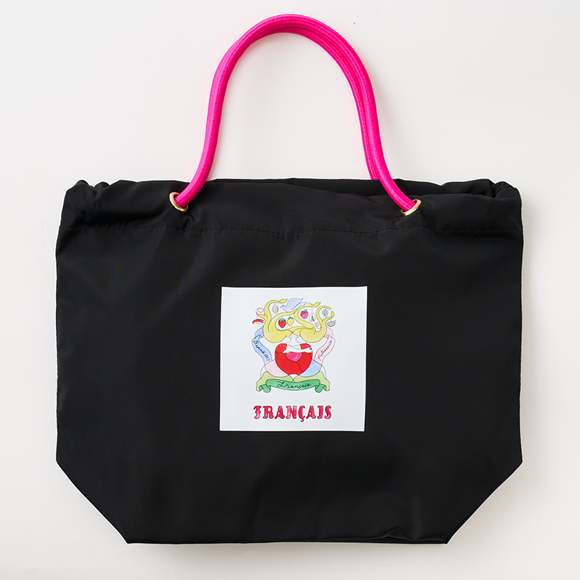 黒地にフランセのブランドロゴが映える、洗練されたデザイン。ふわっと軽い素材で、ちょっとしたおでかけにもぴったりのバッグです。
