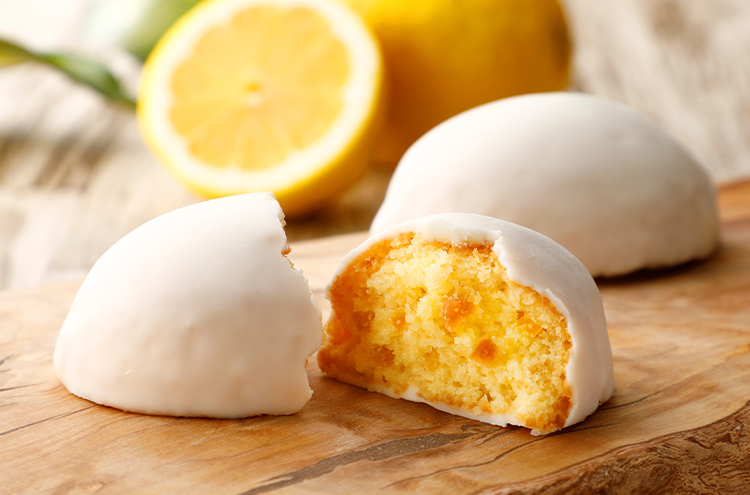 レモンピール、蜂蜜を加え、ふっくらと焼き上げた生地を、レモンチョコ※でコーディング。