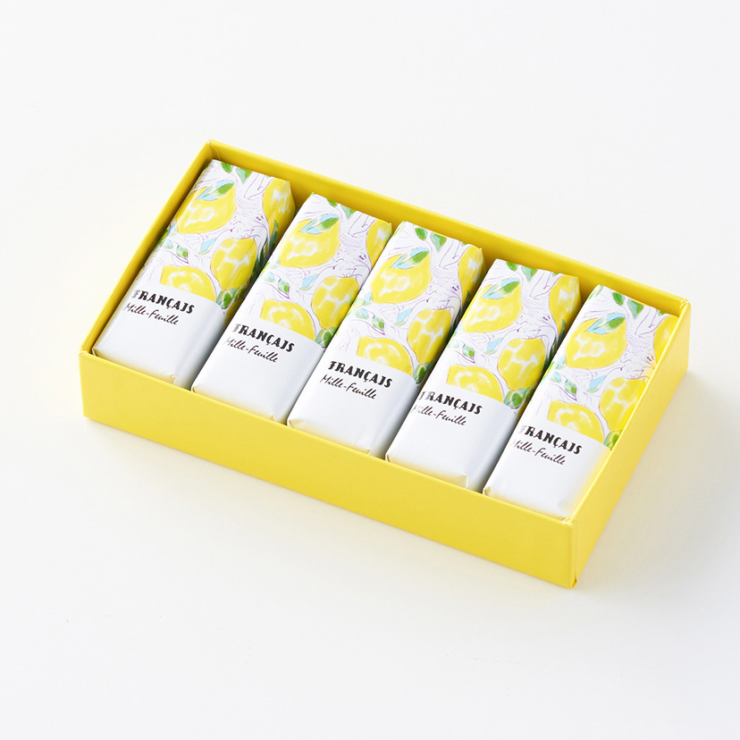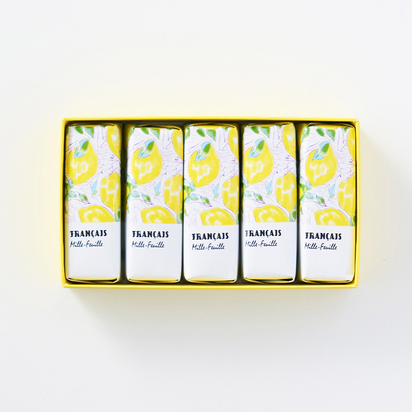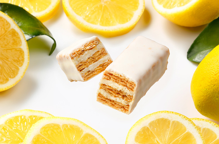 爽やかな香りと酸味の広がるレモンクリームをパイでサンドし、レモン味のコーティングチョコレートで包みました。クリームに加えたレモンピールがアクセントとして、ぐっと香りを引き立てます。