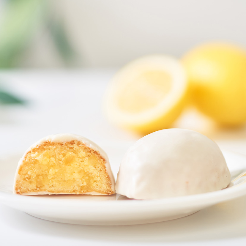 レモンピール、蜂蜜を加え、しっとりと焼き上げた生地を、レモン風味のホワイトチョコレートでコーティングしました。