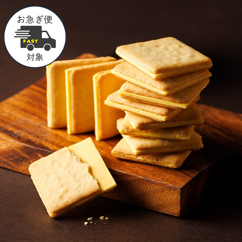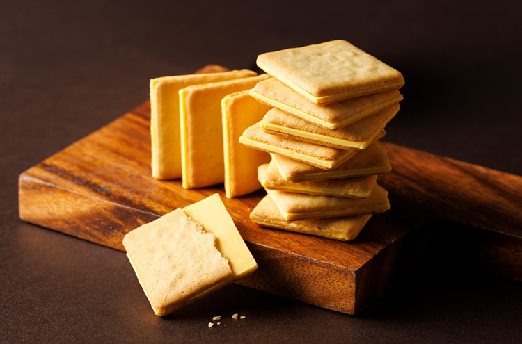 カスタードのような優しい味わいのチョコ※を、薄く焼きあげたクッキーでサンドしました。 さくさくほろりと口どけの良い食感をお楽しみください。※チョコレートコーチングを使用