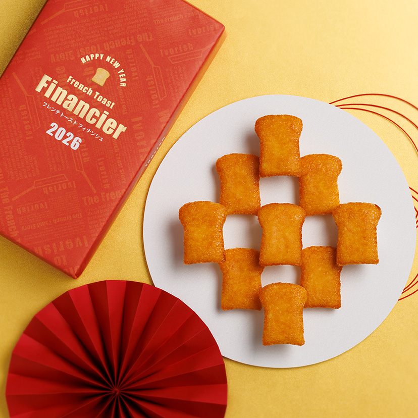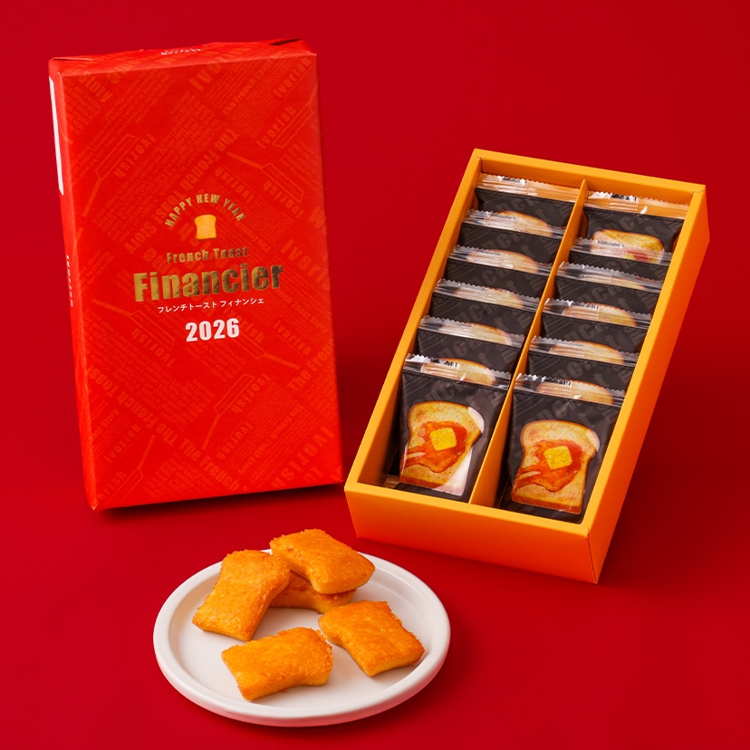 アイボリッシュ定番人気の「フレンチトーストフィナンシェ」が、新年をお祝いした限定パッケージとなって登場!メープルシロップがふんわり香る、まるで焼き立てフレンチトースト! パン粉を入れてふんわりもっちり焼き上げた、可愛いパン型フィナンシェです。