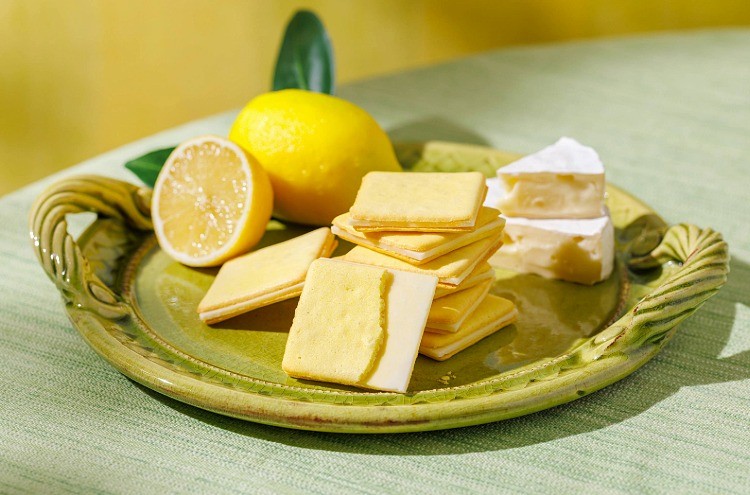 北海道産牛乳とレモンを合わせたクッキー生地に、カマンベールチーズのチョコ※をサンドしたクッキーです。カマンベールのコクとレモンの爽やかな味わいをお楽しみください。