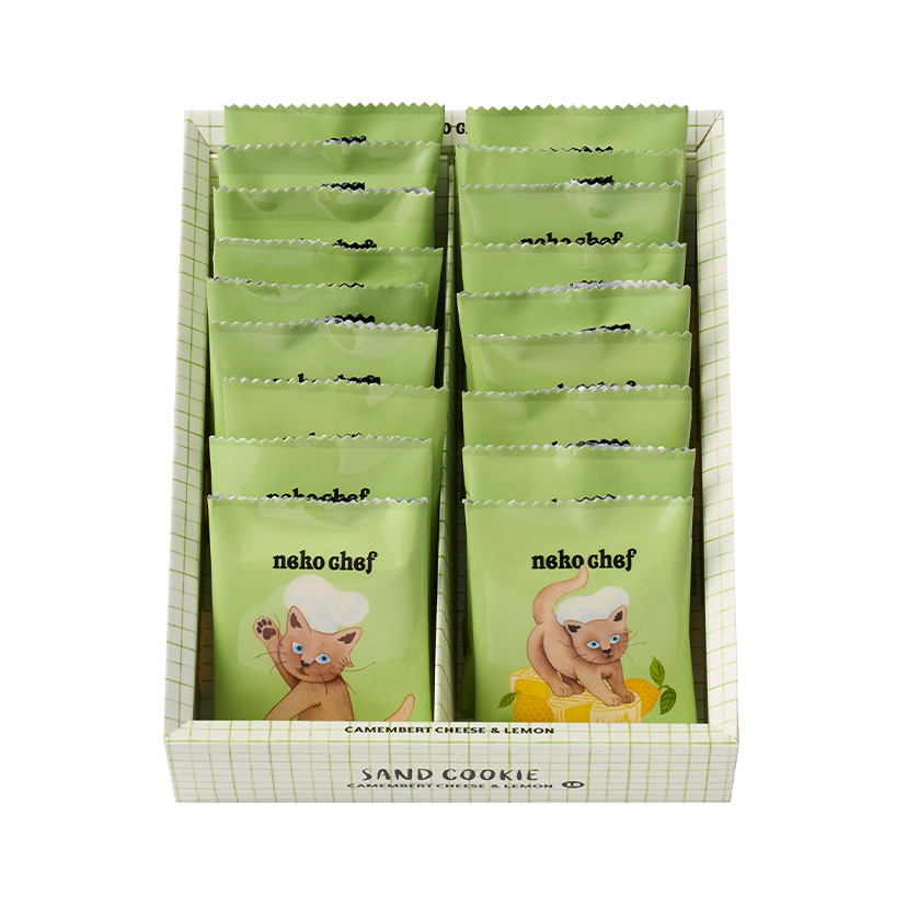 北海道産牛乳とレモンを合わせたクッキー生地に、カマンベールチーズのチョコ※をサンドしたクッキーです。カマンベールのコクとレモンの爽やかな味わいをお楽しみください。 ※チョコレートコーチングを使用※チーズ中カマンベール73%使用