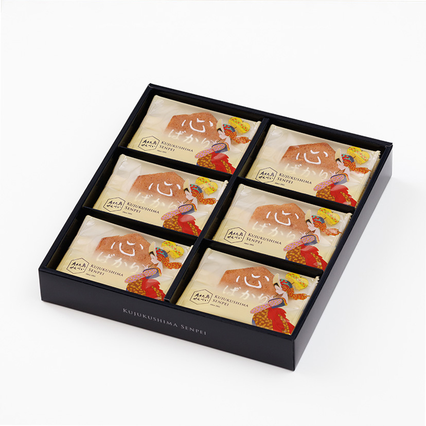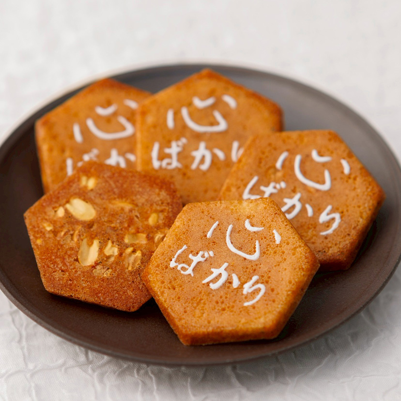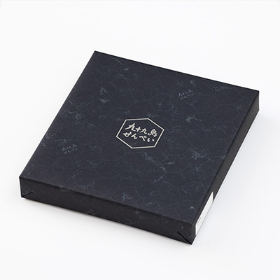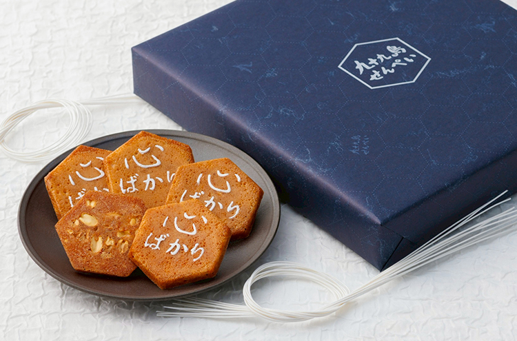 ピーナッツを九十九島の島々にみたて、パリッと香ばしく焼き上げた長崎銘菓「九十九島せんぺい」に心ばかりの文字を描き、シックな装いの限定パッケージにてご用意いたしました。