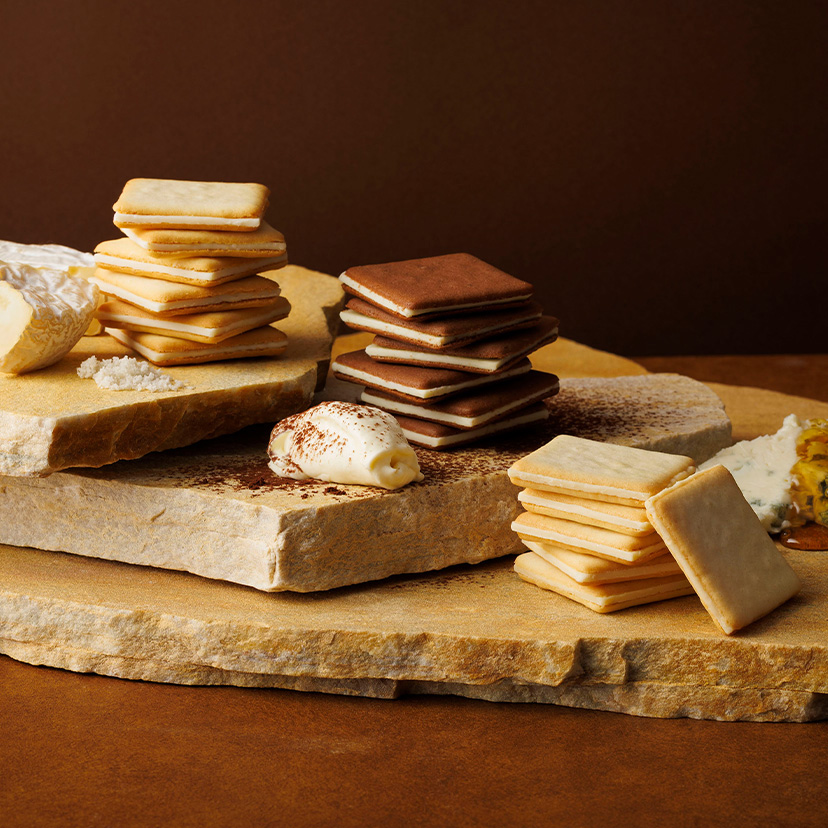 北海道産牛乳とフランス産ゲランドの塩を使った生地に、カマンベールチーズのチョコ※をサンドしたクッキーです。
