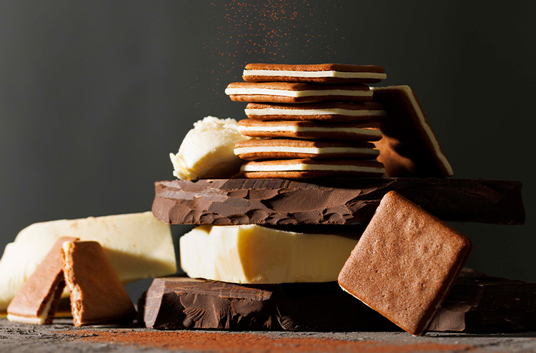エスプレッソを効かせた生地で、マスカルポーネチーズのチョコ※をサンドしました。