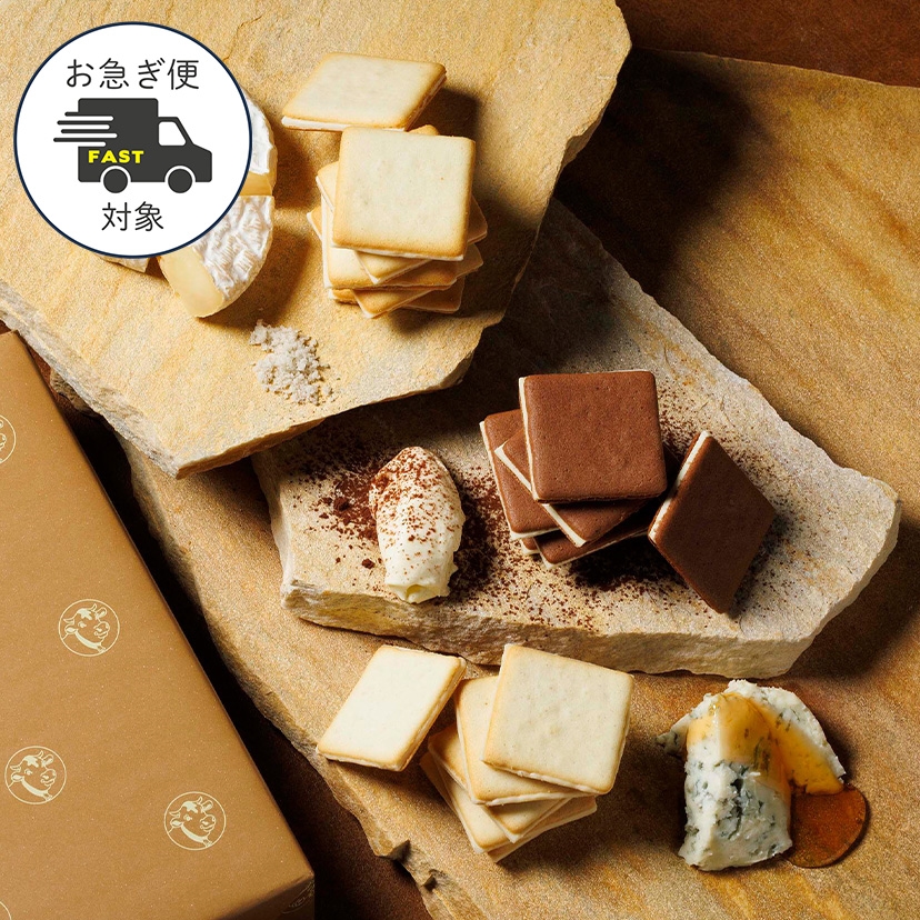 北海道産牛乳とフランス産ゲランドの塩を使った生地に、カマンベールチーズのチョコ※をサンドしたクッキーです。 「ゲランドの塩」は、ミネラル分が多くまろやかな口当たりで菓子との相性も抜群。 カマンベールチーズの独特なコクをより一層、深い味わいに仕上げています。