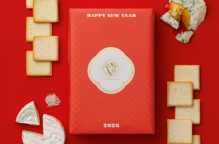 東京ミルクチーズ工場で人気の「ソルト&カマンベールクッキー」と「蜂蜜&ゴルゴンゾーラクッキー」の2種が一度に味わえる詰合せを、特別なパッケージでお届けいたします。