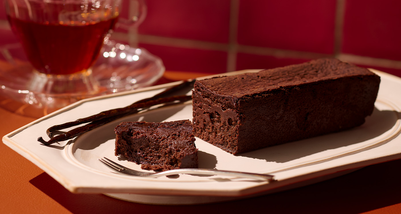 マダガスカル産バニラとグラスフェッドバターを練り込んだバニラ薫る生地に、チョコレートを満たした、コク深い味わいのケーキです。