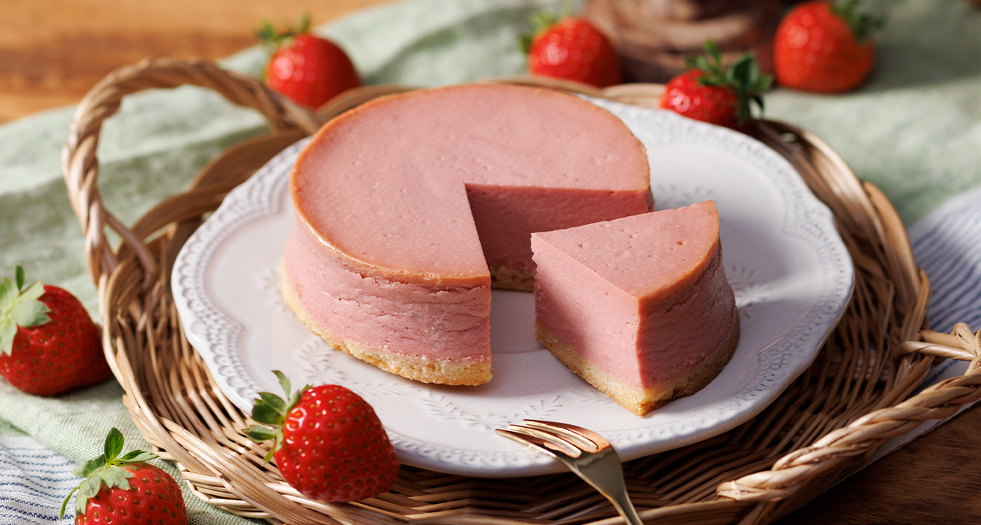 人気のクリーミーチーズケーキが季節限定フレーバーの苺味で登場!