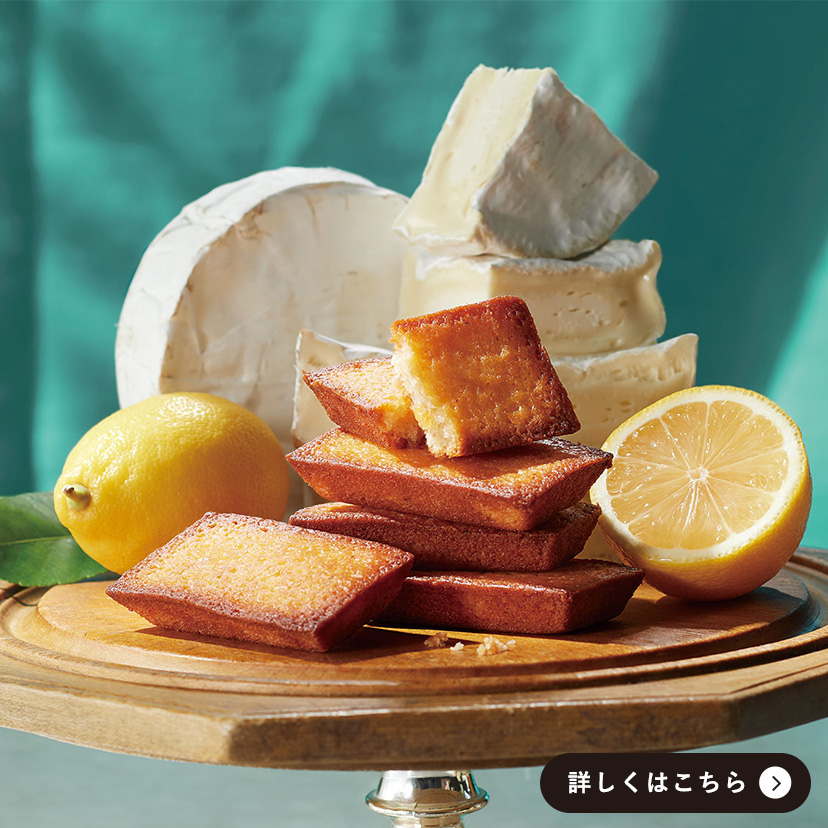 クリーミーなカマンベールと、レモンの上品な酸味が織りなす、異国情緒あふれる味わいのフィナンシェ。