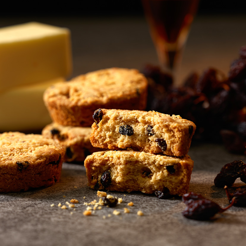 メープルの甘みとラムレーズンの酸味が効いた、深みのあるバタークッキーです。"