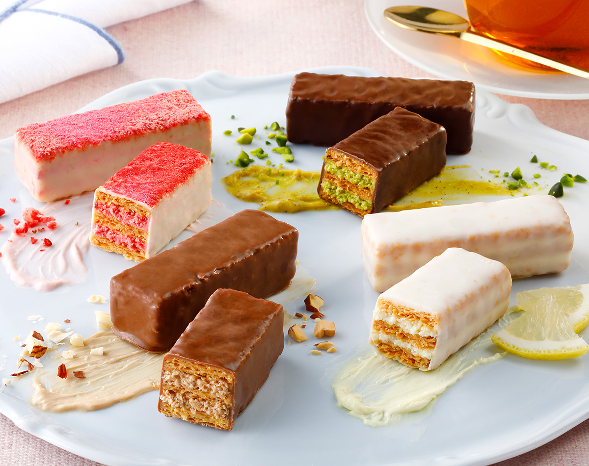 果実をたのしむミルフィユ詰合せ32個入パイの層の数、果実の食感、木の実の香りなど。
